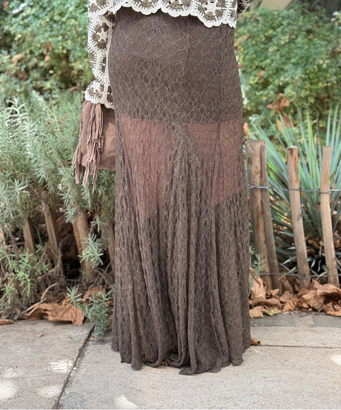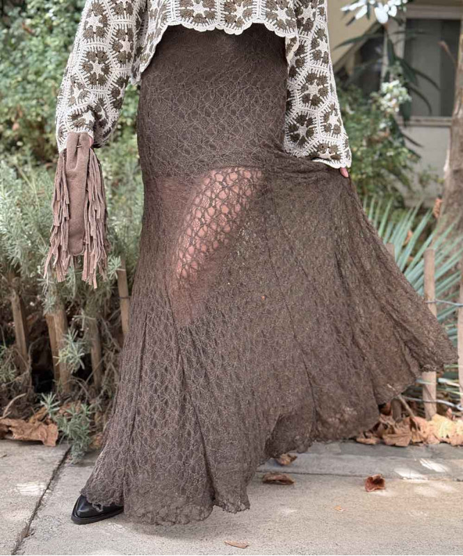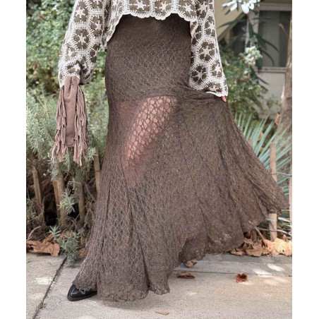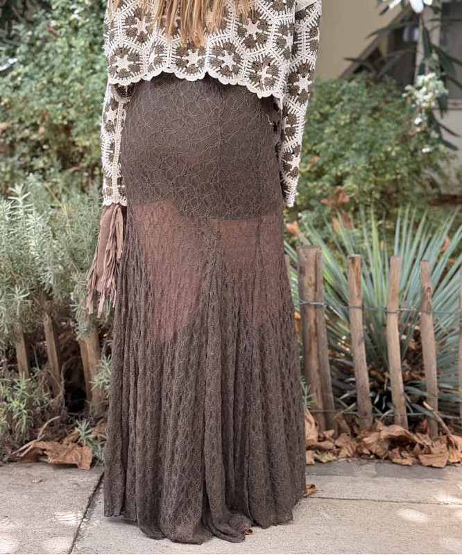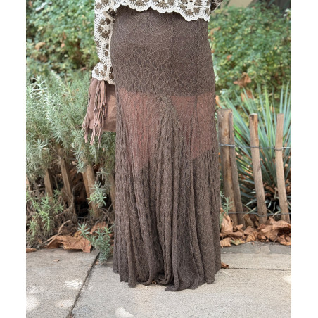 Jupe longue dentelle chocolat