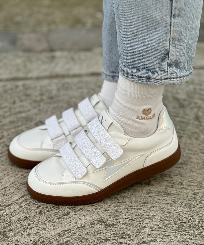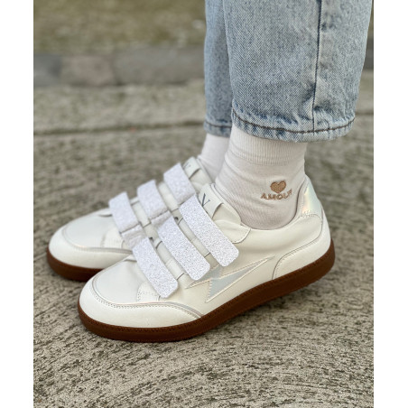 Vanessa Wu baskets à scratch glitter blanc, modèle Laurette, prenez votre pointure habituelle.