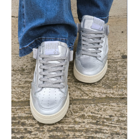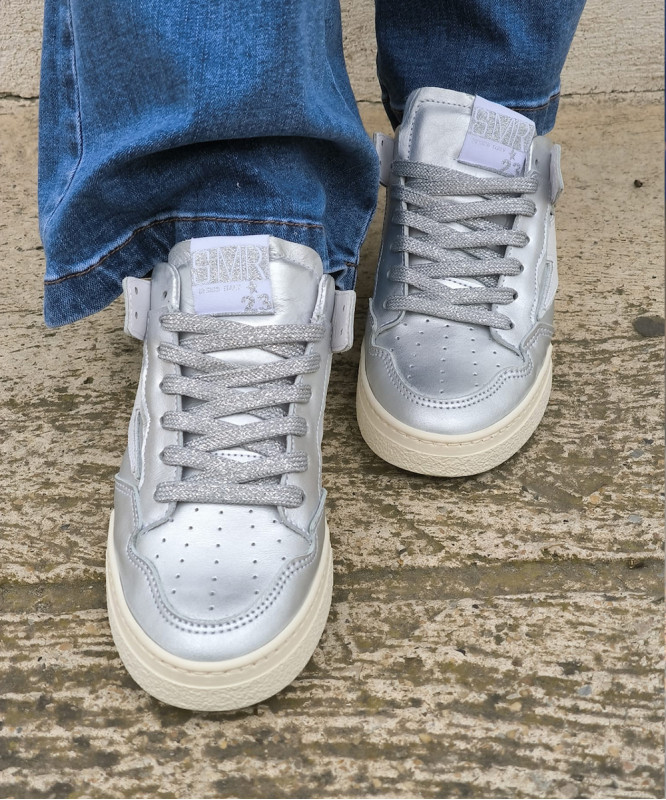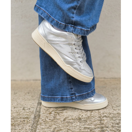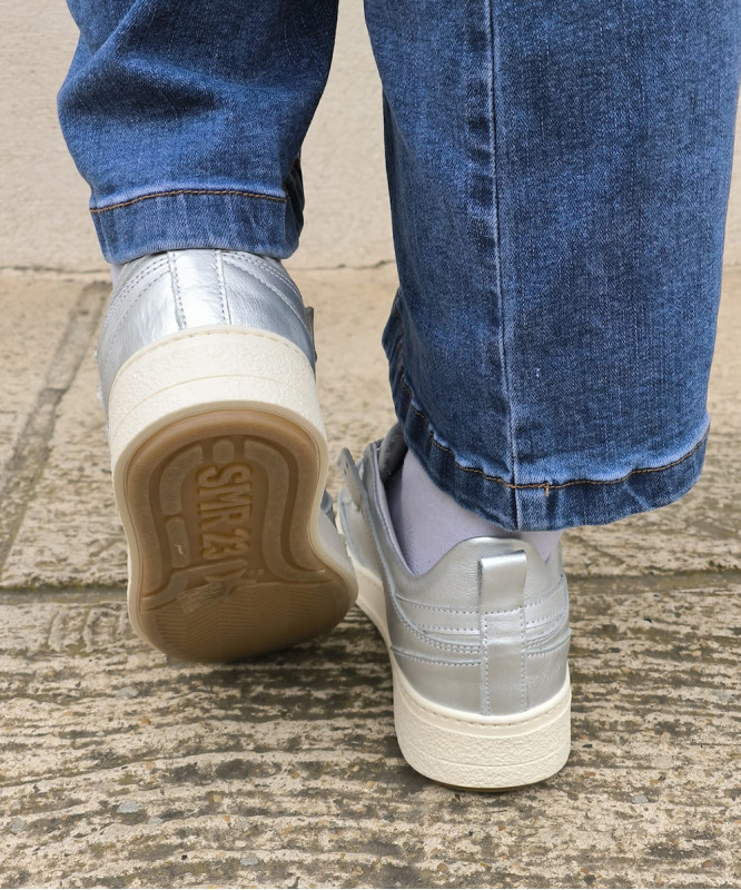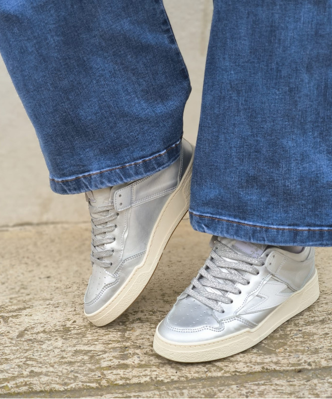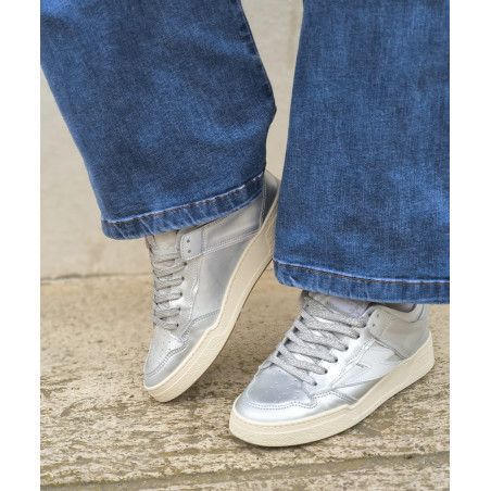 Semerdjian - baskets argentées, lacets argent, modèle chita. Eclair blanc. 100% cuir italien. Semelle intérieure amovible rembourrée. Prenez votre pointure habituelle, si vous êtes entre 2 pointure optez pour la plus petite des 2.