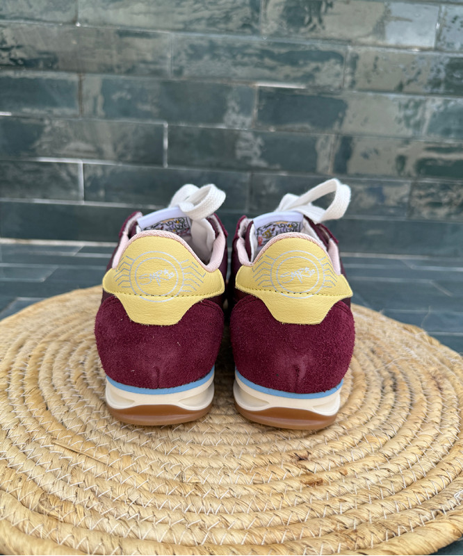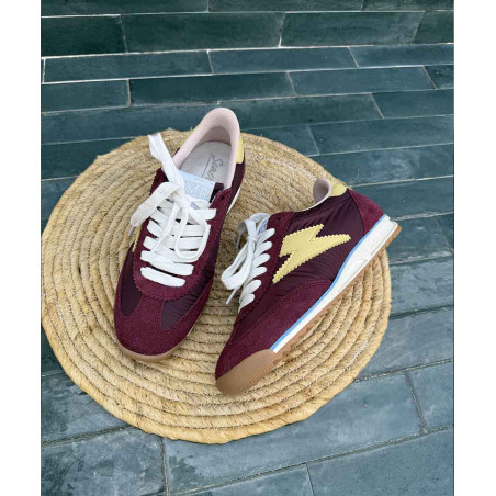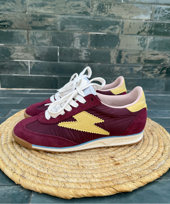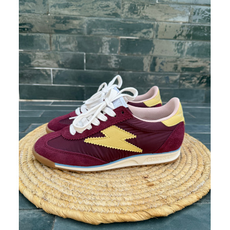 Baskets Semerdjian bordeaux et jaune, semelle fine crantée. Prenez votre pointure habituelle, si vous êtes entre 2 tailles optez pour la plus petite des 2. Modèle Joyce C464