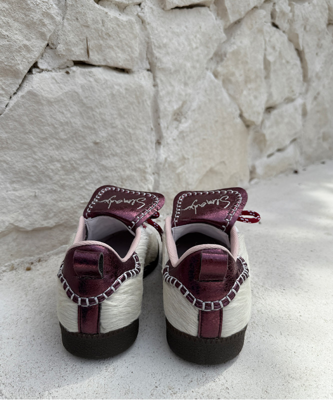 Baskets Semerdjian poils blancs et détails roses, languette retournée en cuir. 100% cuir italien. Prenez votre pointure habituelle, si vous êtes entre 2 pointures optez pour le plus petite des 2. Modèle AVA C405