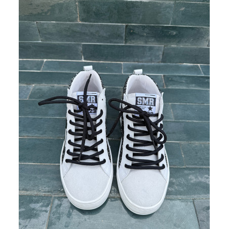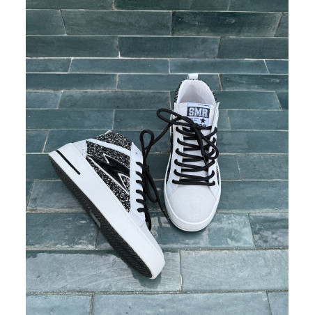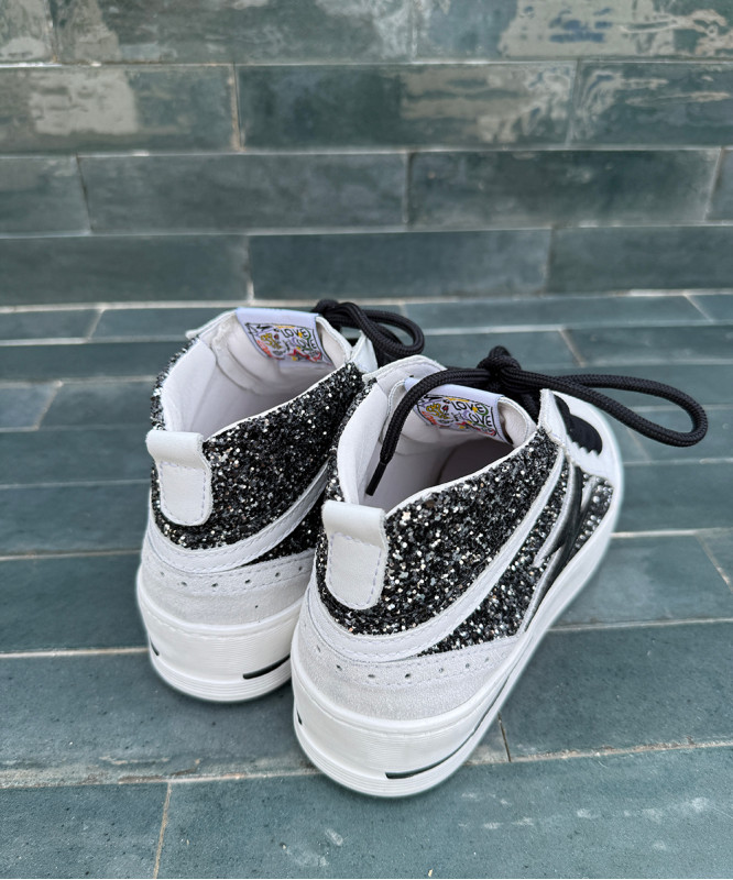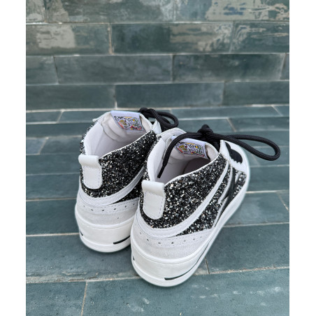 Baskets Semerdjian semi montantes glitter noir et cuir gris
