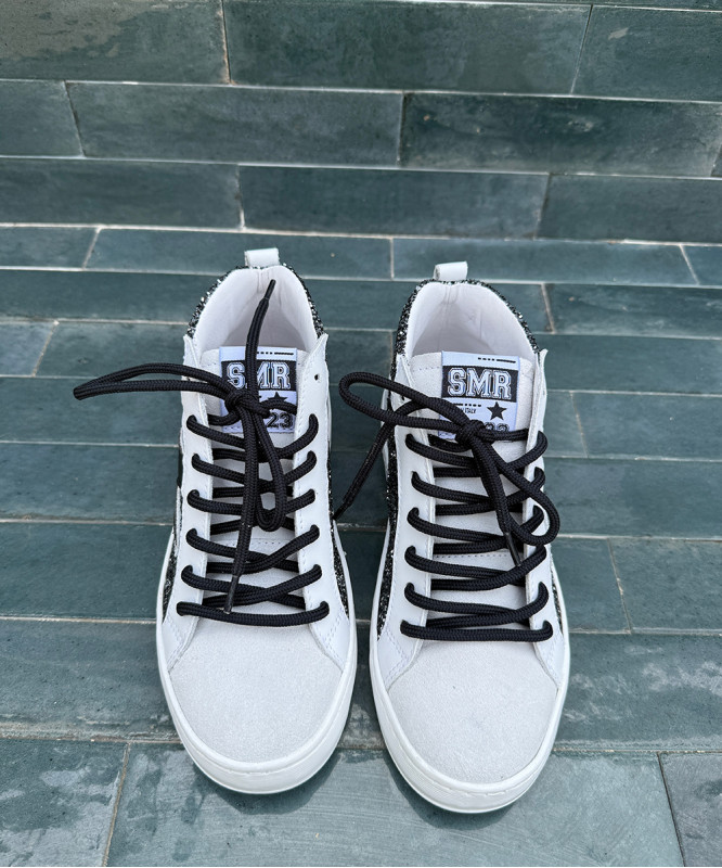 Baskets Semerdjian glitter noir et cuir gris, semi montantes (juste au dessus de la malléole). 100% cuir italien. Prenez votre pointure habituelle, si vous êtes entre 2 pointure optez pour la plus petite des 2.