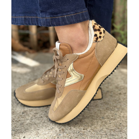 Baskets Victoria beige doré et léopard, semelle style running. Ultra légères, parfaites pour donner un côté sport chic à votre tenue. Prenez votre pointure habituelle.