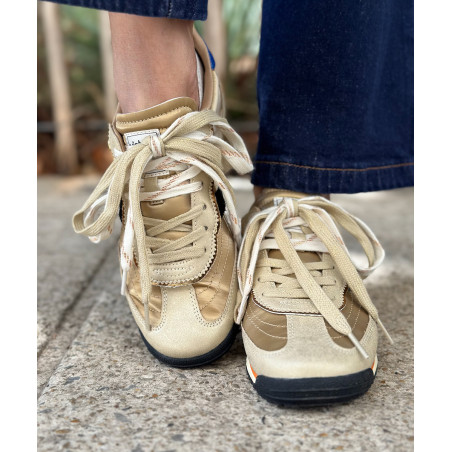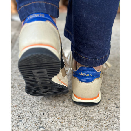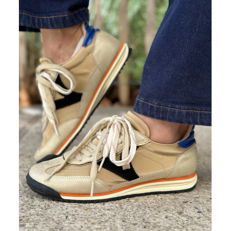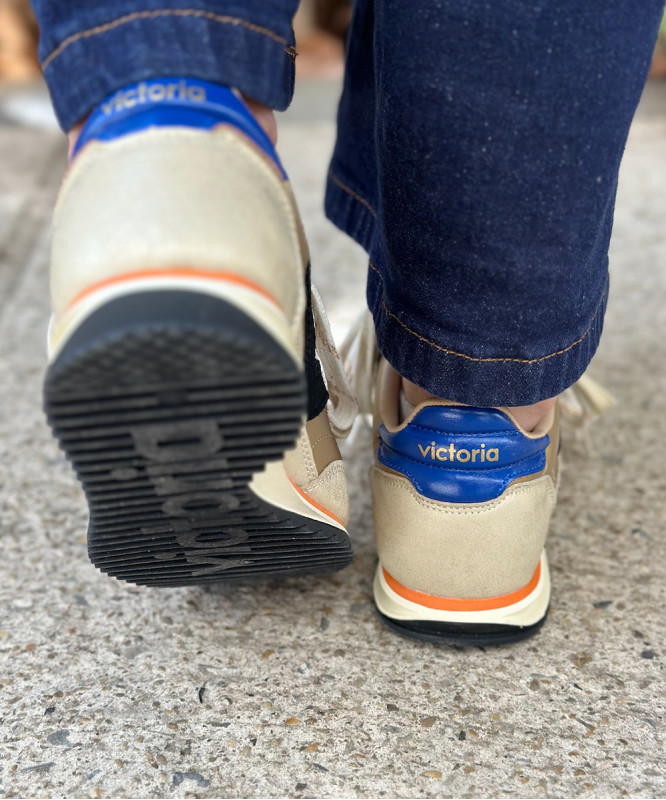 Baskets fines Victoria doré et bleu, semelle fine, très tendance. Se marient facilement avec toutes vos tenues. Parfaites avec un pantalon large fluide. Prenez votre pointure habituelle.