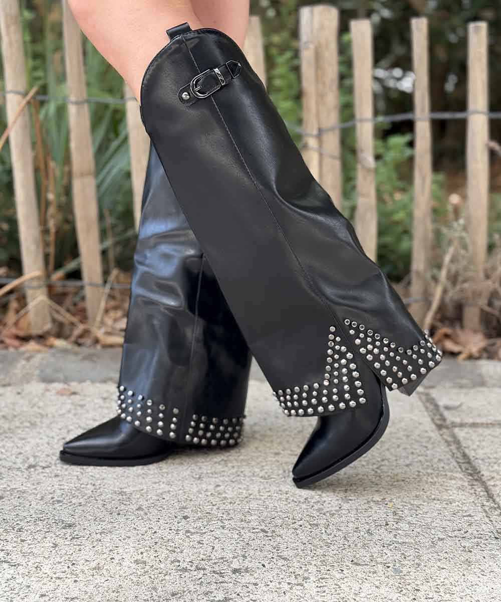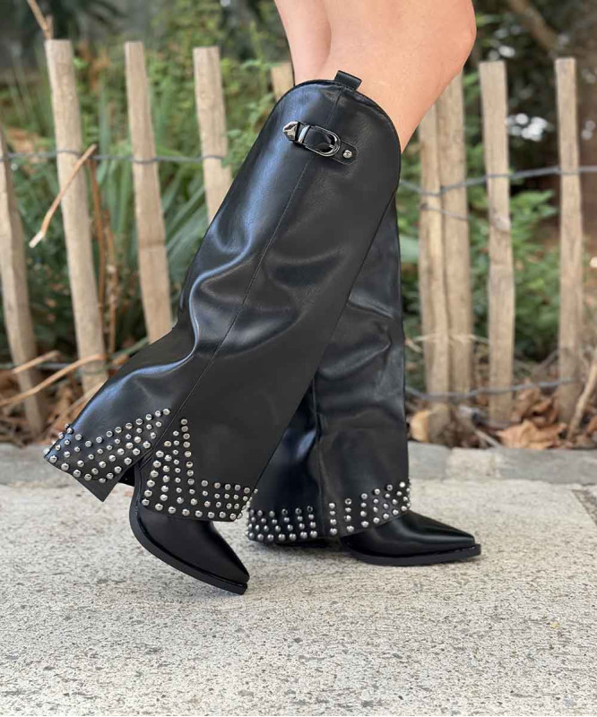 Santiags noires à rabats à clous argentés. Prendre votre pointure habituelle/