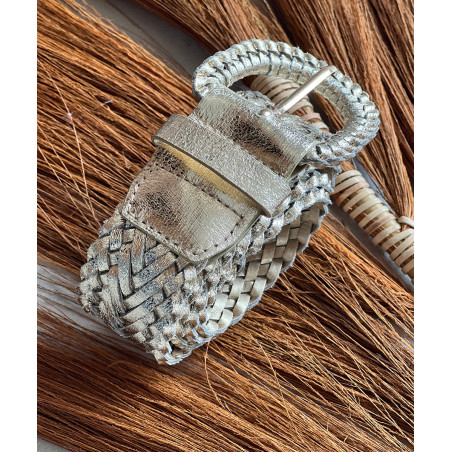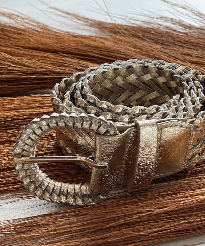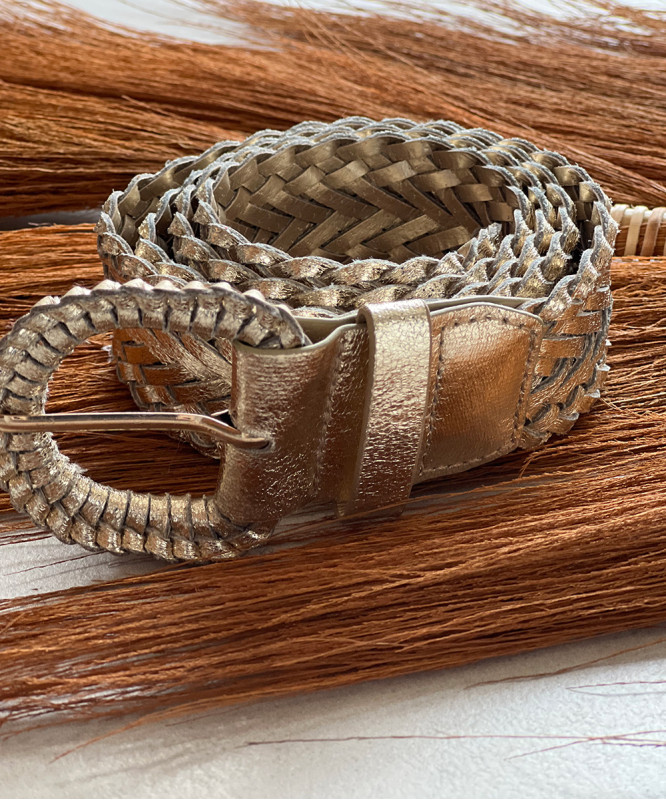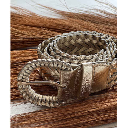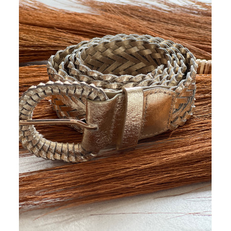 Ceinture tressée dorée, passe dans les passants d'un pantalon ou peut se porter pour ceinturer une robe fluide. du 34 au 44