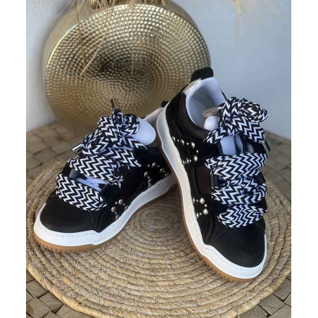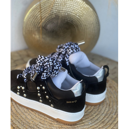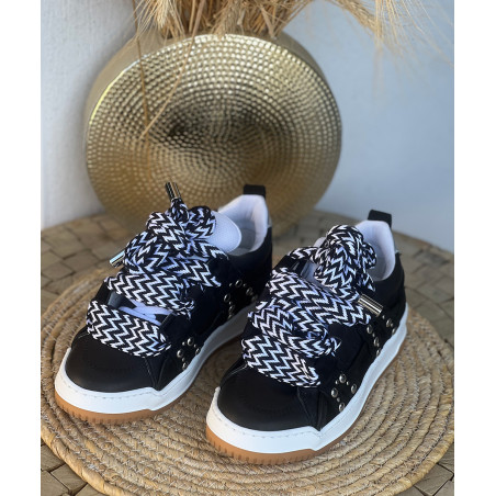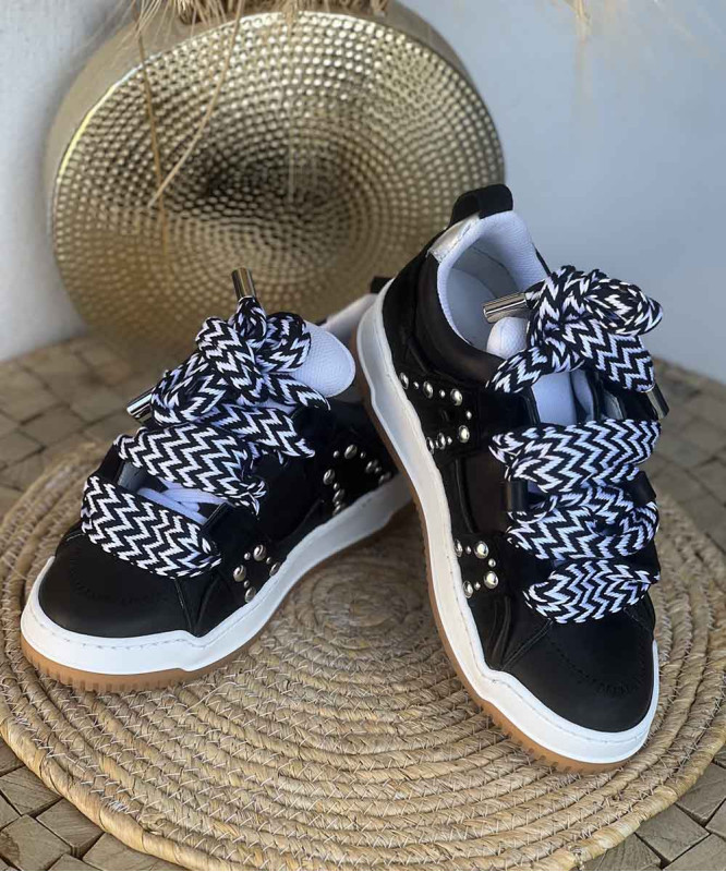 Baskets Semerdjian noires et blanches gros lacets, 100% cuir italien, semelle amovible Parfaites avec un pantalon large fluide. Prendre votre pointure habituelle, si vous êtes entre 2 pointures optez pour la plus petite des 2.