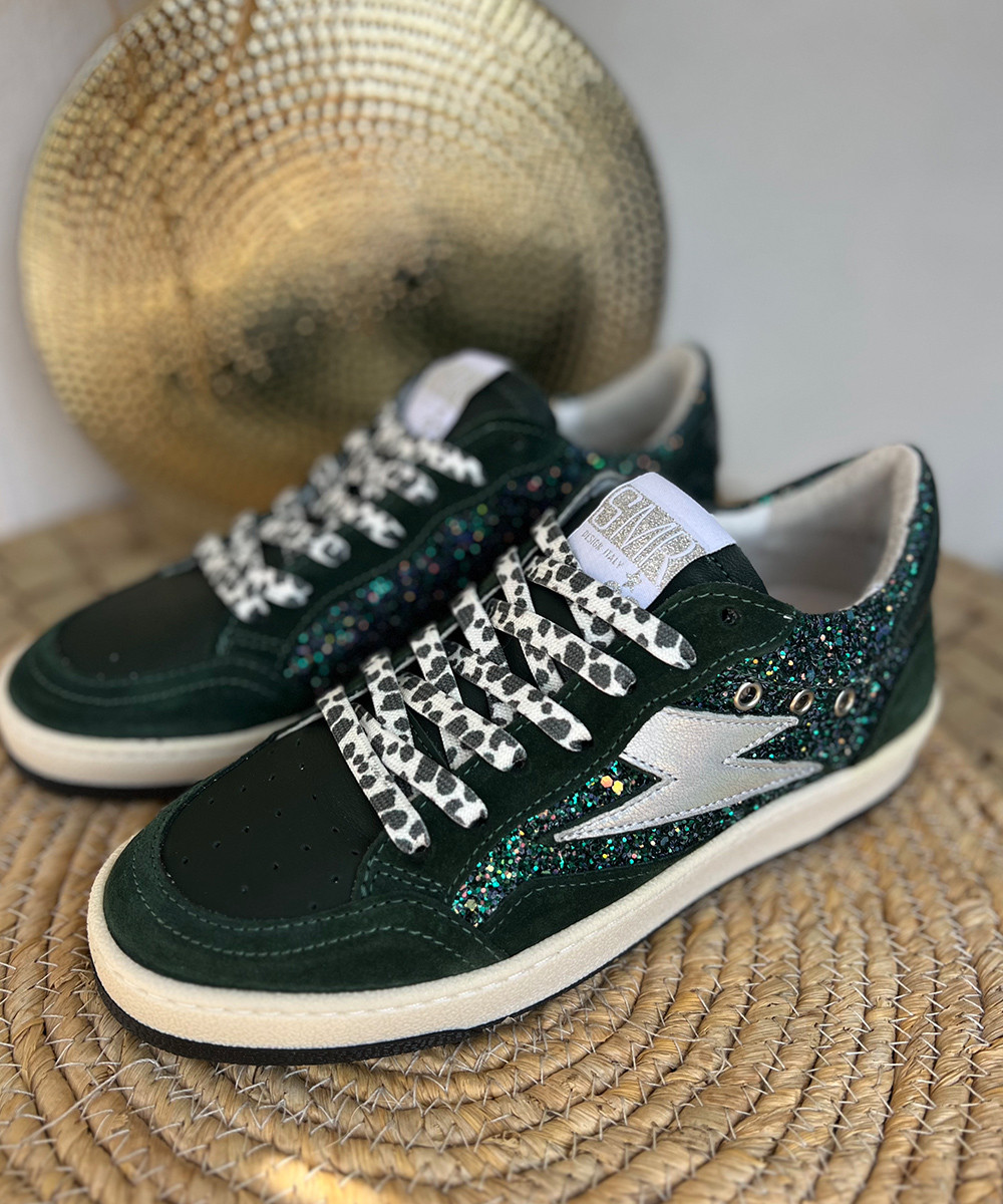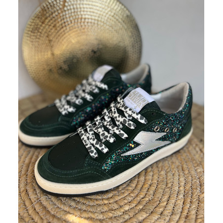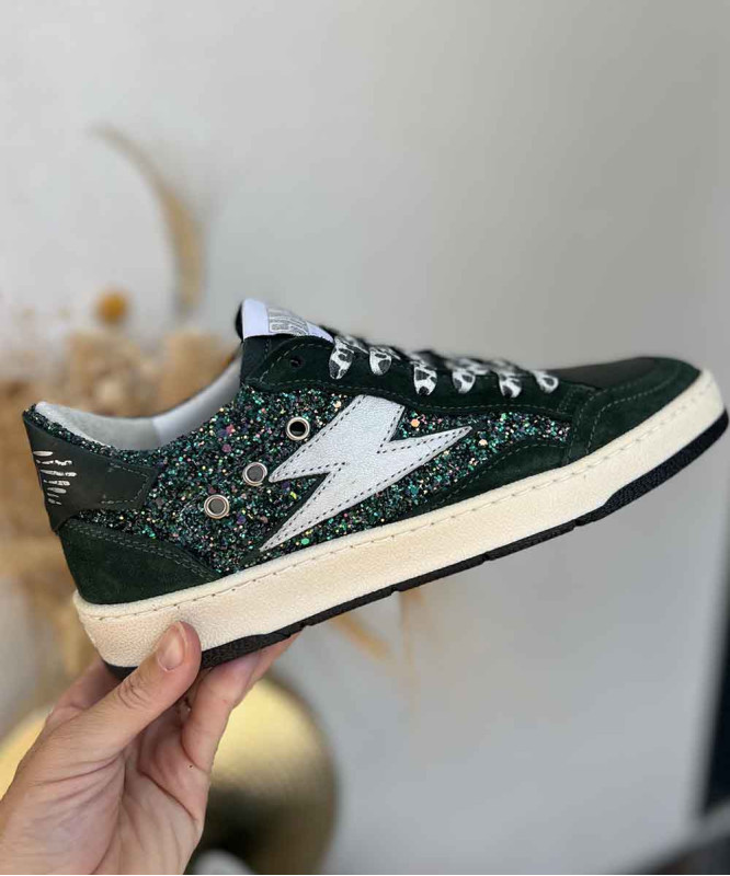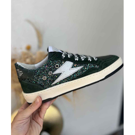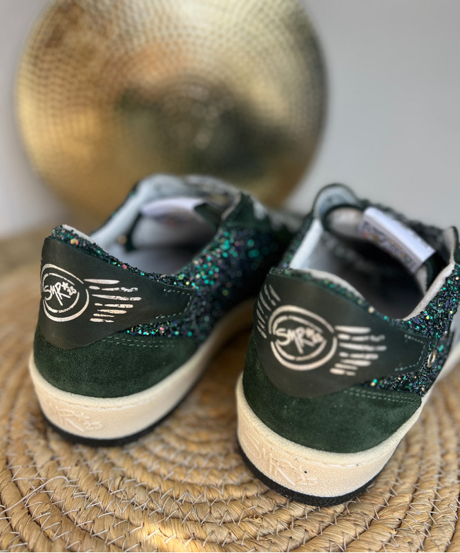 Baskets Semerdjian cuir vert et glitter vert, semelle amovible, 100% cuir italien. Prenez votre pointure habituelle, si vous êtes entre 2 pointures optez pour la plus petite des 2.