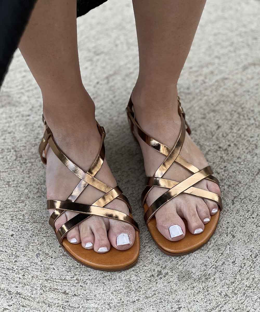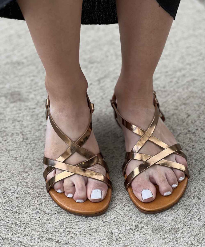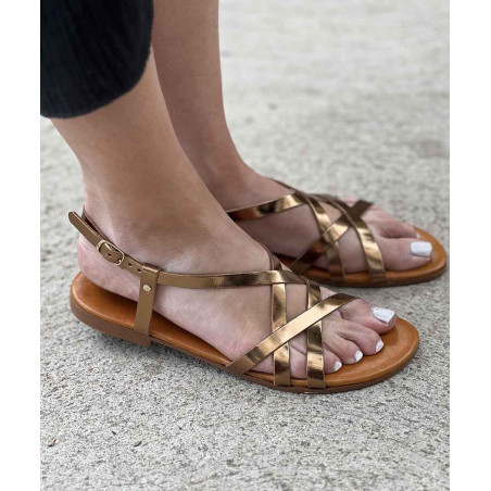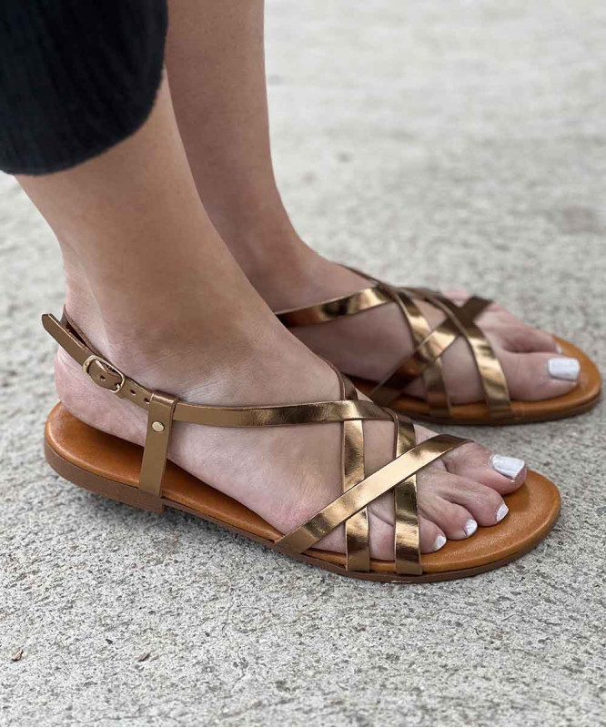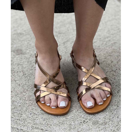 Sandales Donna Lucca fines brides bronze 100% cuir, légères. Prenez votre pointure habituelle.