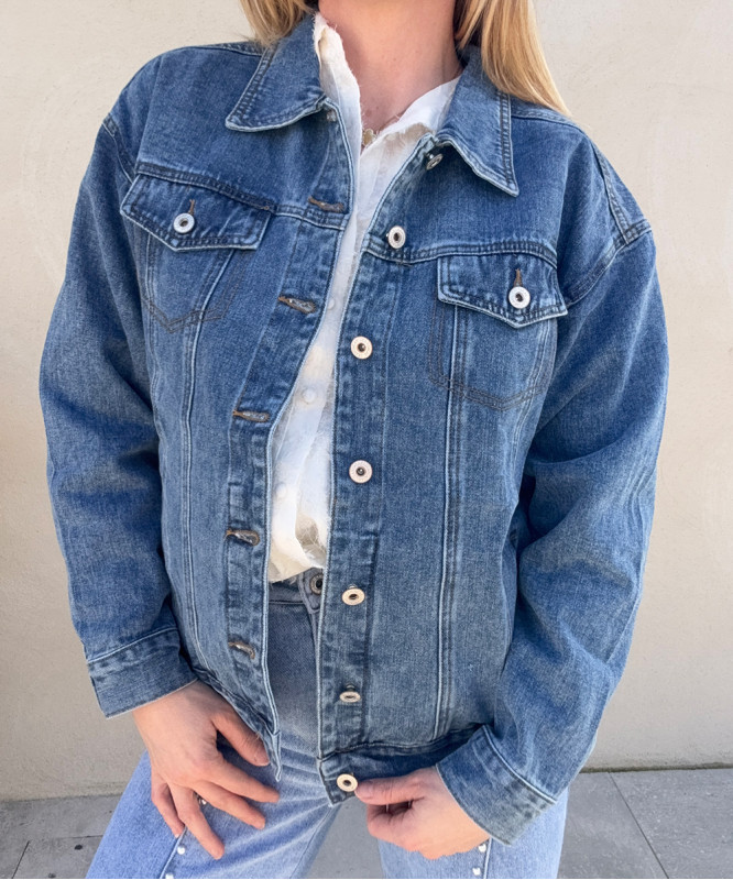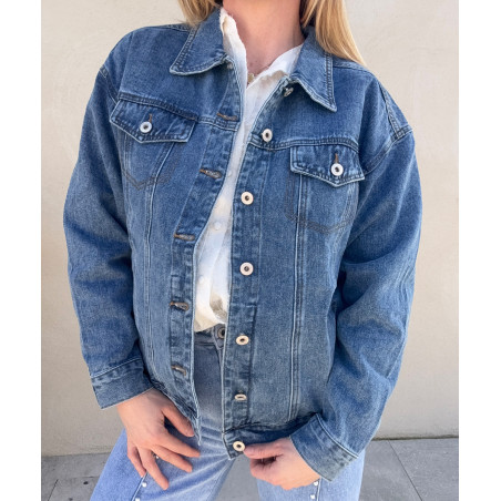Veste en jean brut LOVE, style oversize, inutile de sur-tailler. S/M pour le 36/38 M/L pour le 40/42